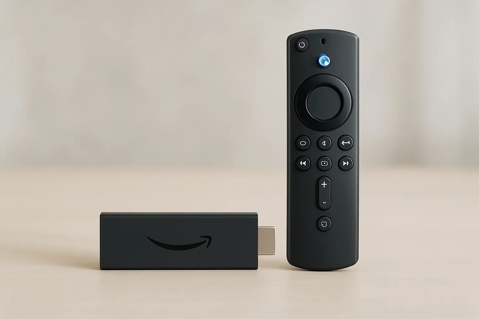 Controle alternativo compatível com Fire TV Stick e Cube. Usa Bluetooth estável e comandos de voz.
