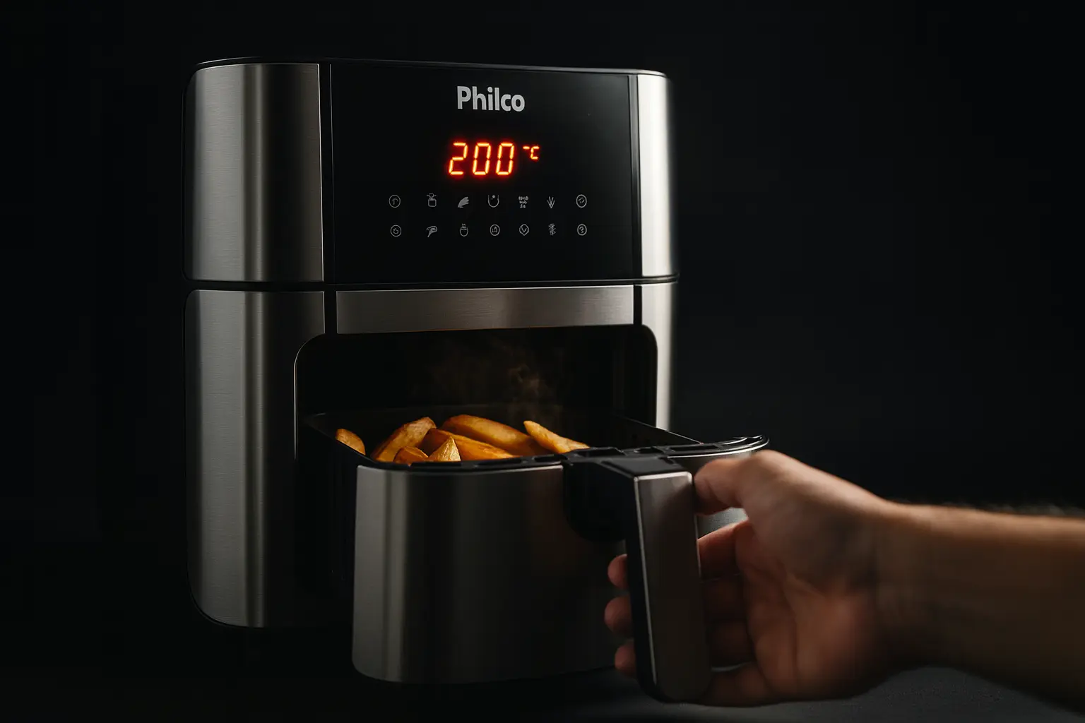 A air fryer kitchen art Philco PAF16A é a escolha para quem precisa de espaço. São 16 litros e funções 4 em 1 que permitem assar, fritar e reaquecer. Nos testes, a porta lateral removível facilitou bastante a limpeza. Por outro lado, a ausência de receitas automáticas limita um pouco a praticidade para iniciantes.